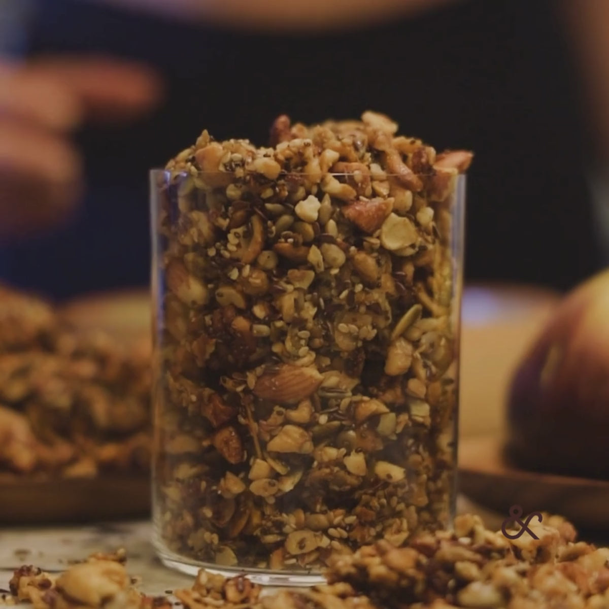The finest 80% dark chocolate granola requires the highest quality chocolate. In collaboration with the 'Chocolate Makers'